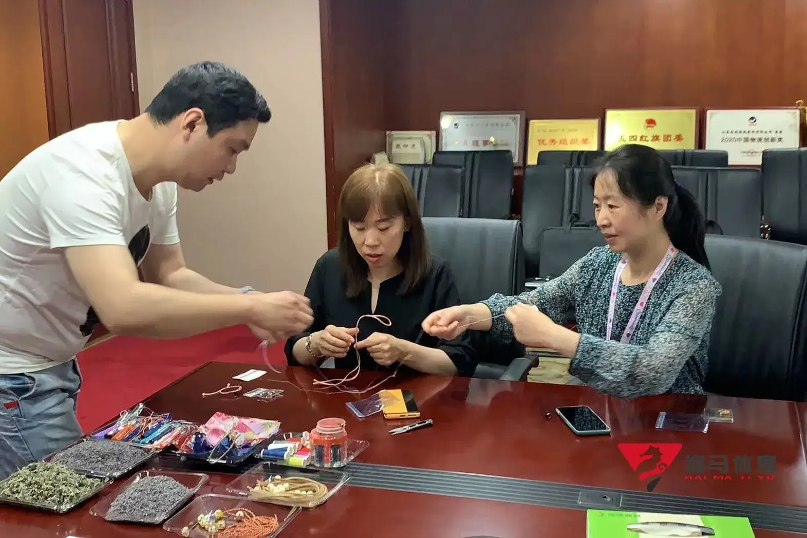 制作前,Vsport体育的手工老师首先介绍了端午的习俗以及端午节制作香囊与五彩绳的来历,让大家在活动前了解端午的民俗文化,手工老师将精心准备的有着美好寓意的五色彩绳、色彩绚丽的香包袋以及清香的艾草薰衣草,送到职员手中,携手制作香包和五彩绳。